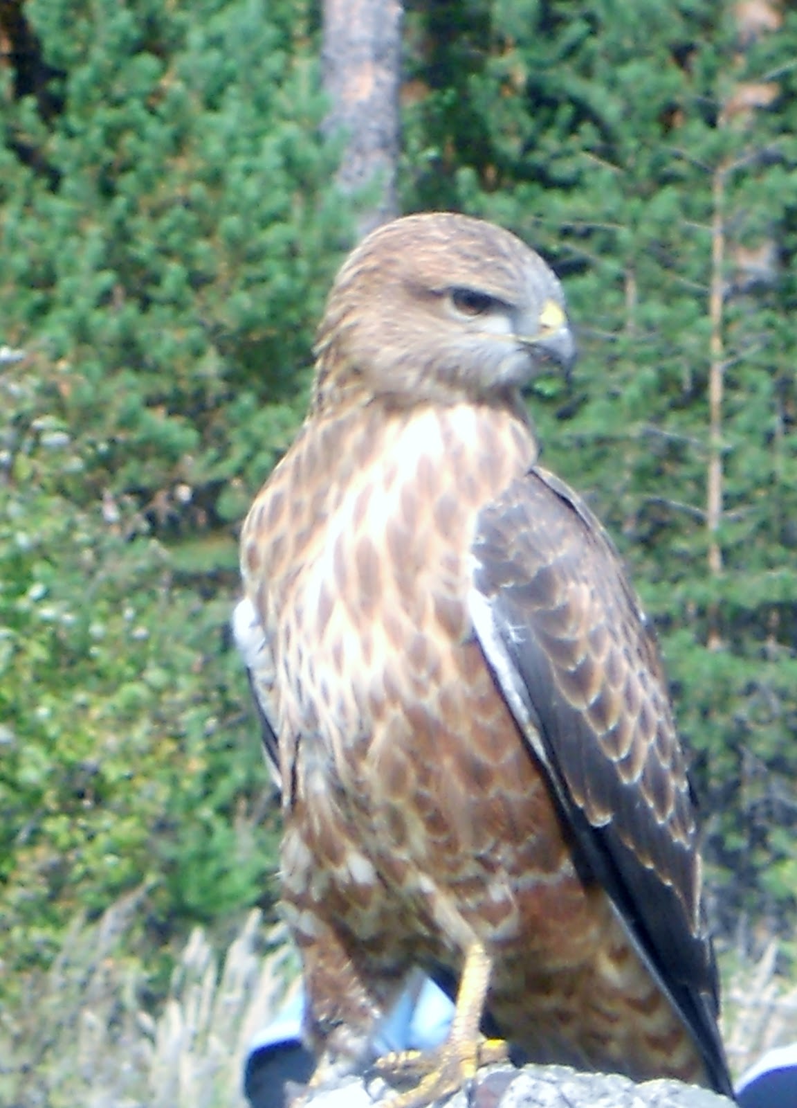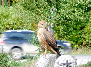 А ещё сегодня к нам на улицу залетел, не знаю, ястреб, наверное... с обожженной лапкой. Уселся на столб и долго позировал, пока мы с соседями его фотографировали...