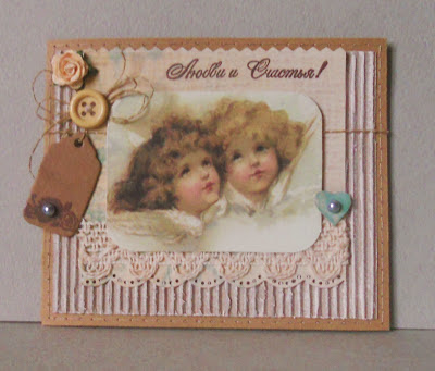 С открыткой участвую в задании блога I love Scrap cкетч №26 - открытка. Скетч повернула на 180 градусов.