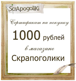 Блог "Скрапоголики", один из моих самых любимых блогов, разыгрывает конфетку в честь 1000 читателей - сертификат на покупку. Запись до 1 апреля! Успевайте!!!!!!!!!!!!!!!!!!!