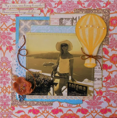 Что-то стала я отставать, не укладываюсь во временные рамки. За мной еще долг - 5-ая страница. А сегодня я покажу шестую страничку в Женский альбом в рамках СП с Арт-кладовой. Обязательный элемент - стразы, бусины, полу бусины. Фразу я взяла: "Ну и что, что ветер в голове?! Зато мысли всегда свежие..."