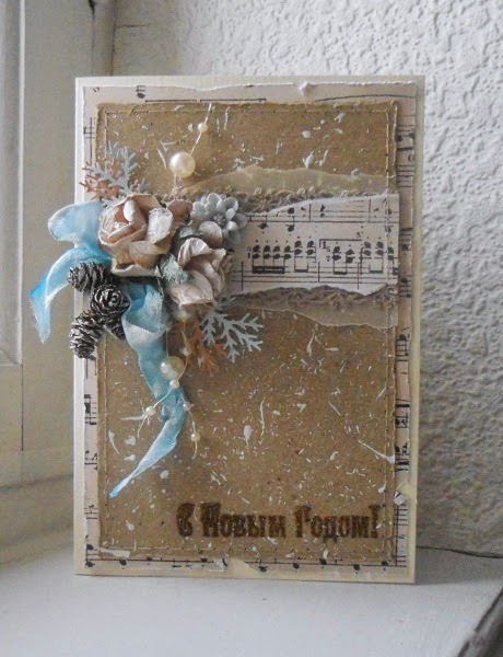 В блогах вовсю идет подготовка к Новому Году. Столько красоты! Вот я тоже решила пару открыток сделать. Все равно поздравлять-то ведь надо будет).Много-много вижу крафтовых открыток... и захотелось мне сделать такую).